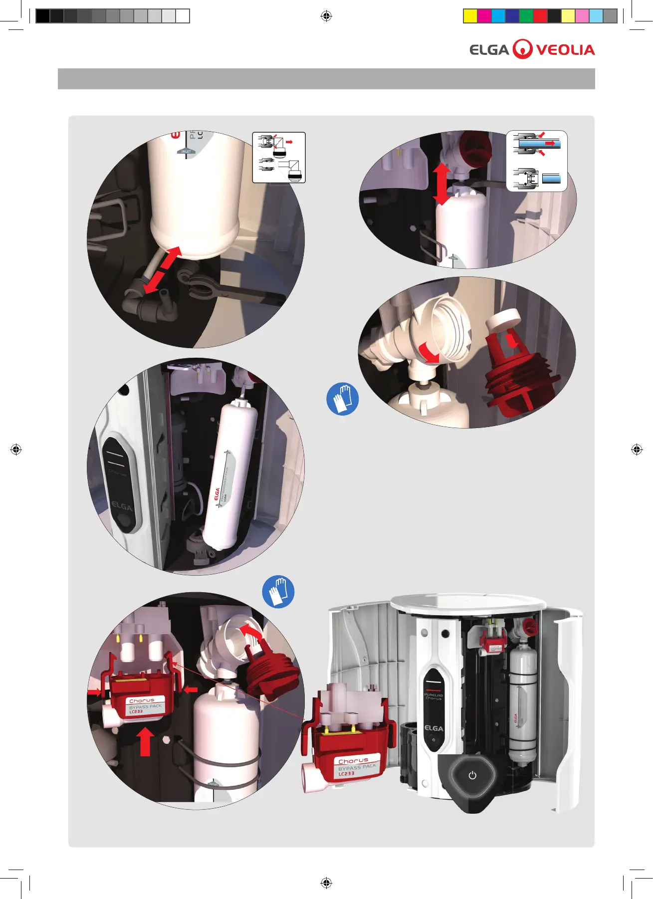 6. Fit bypass pack LC233 and Sanitisation cap. 7. Press process button (ON).