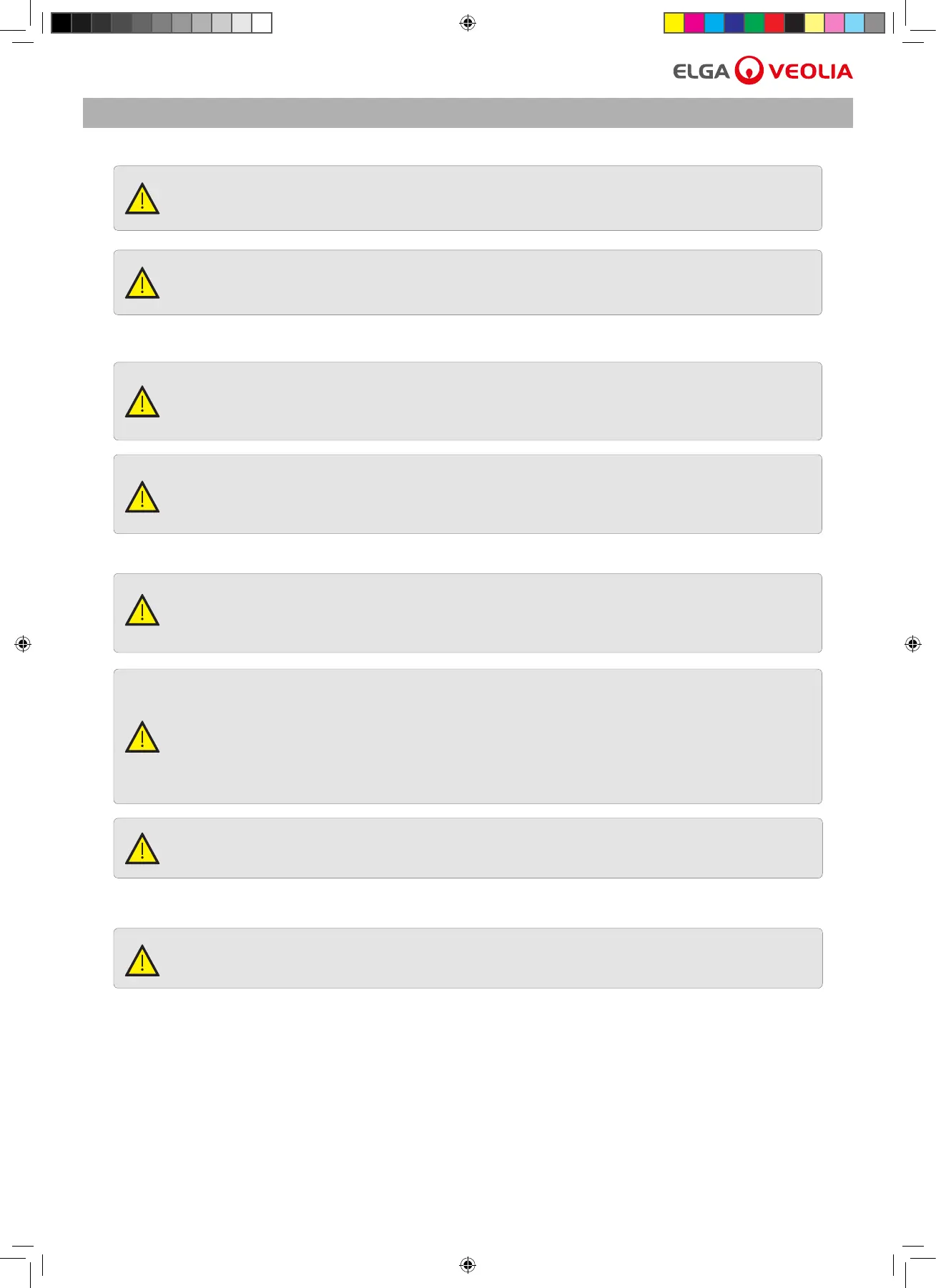 IF THE EQUIPMENT IS USED IN A MANNER NOT SPECIFIED BY ELGA®, THE PROTECTION
