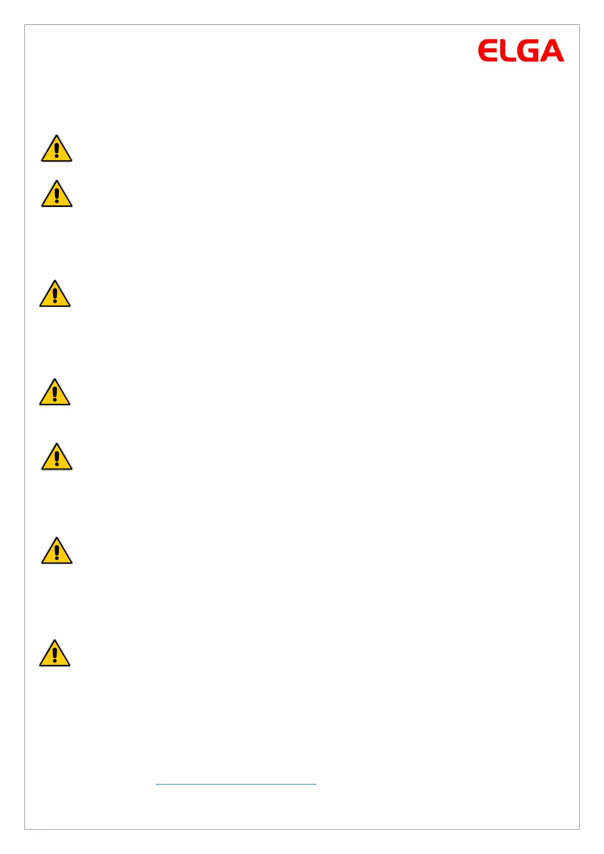 If in doubt always seek advice before commencing work on ELGA products. Please contact the technical