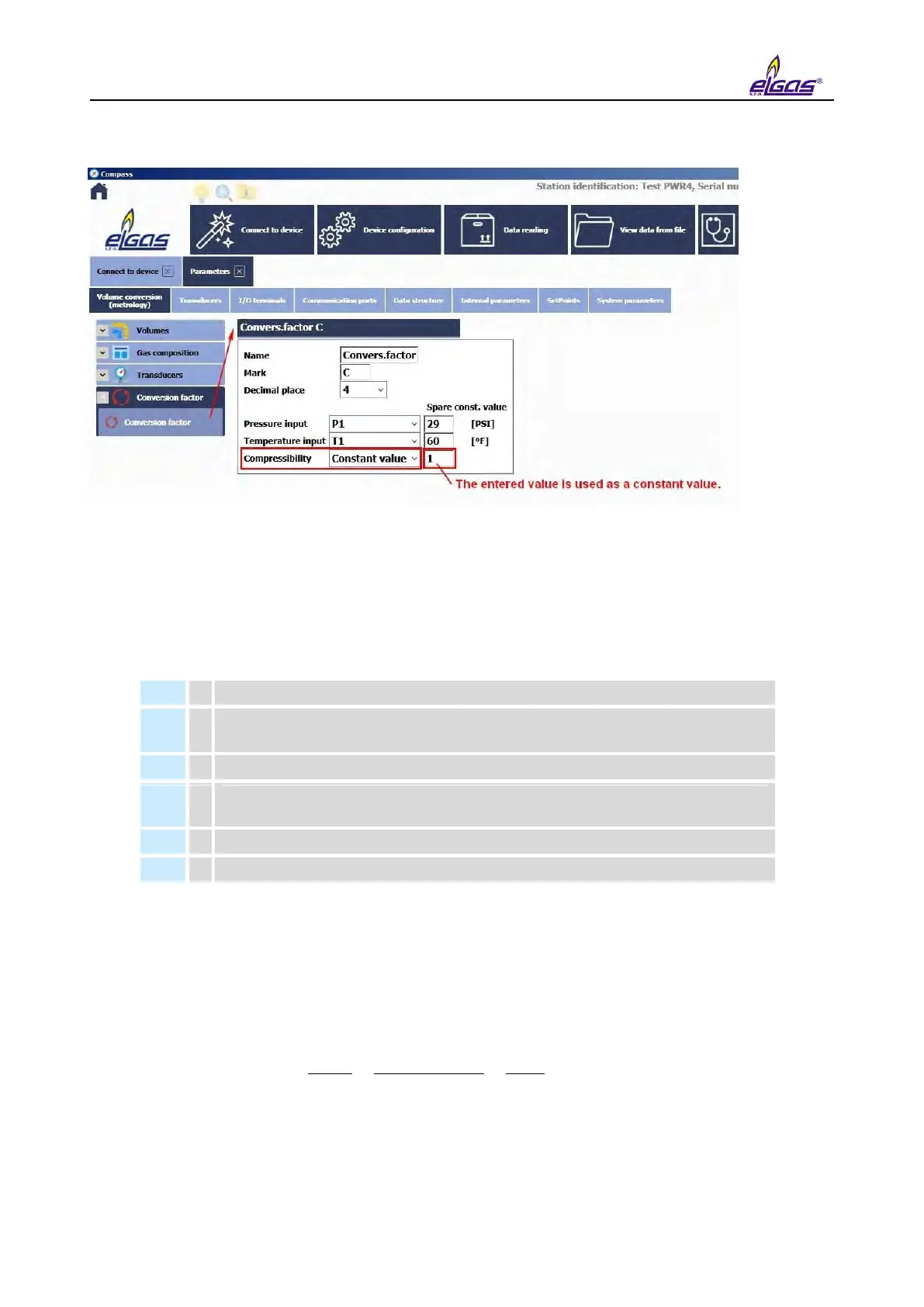 Fig. 68 Setting the constant compressibility value for calculating C (SW Compass)