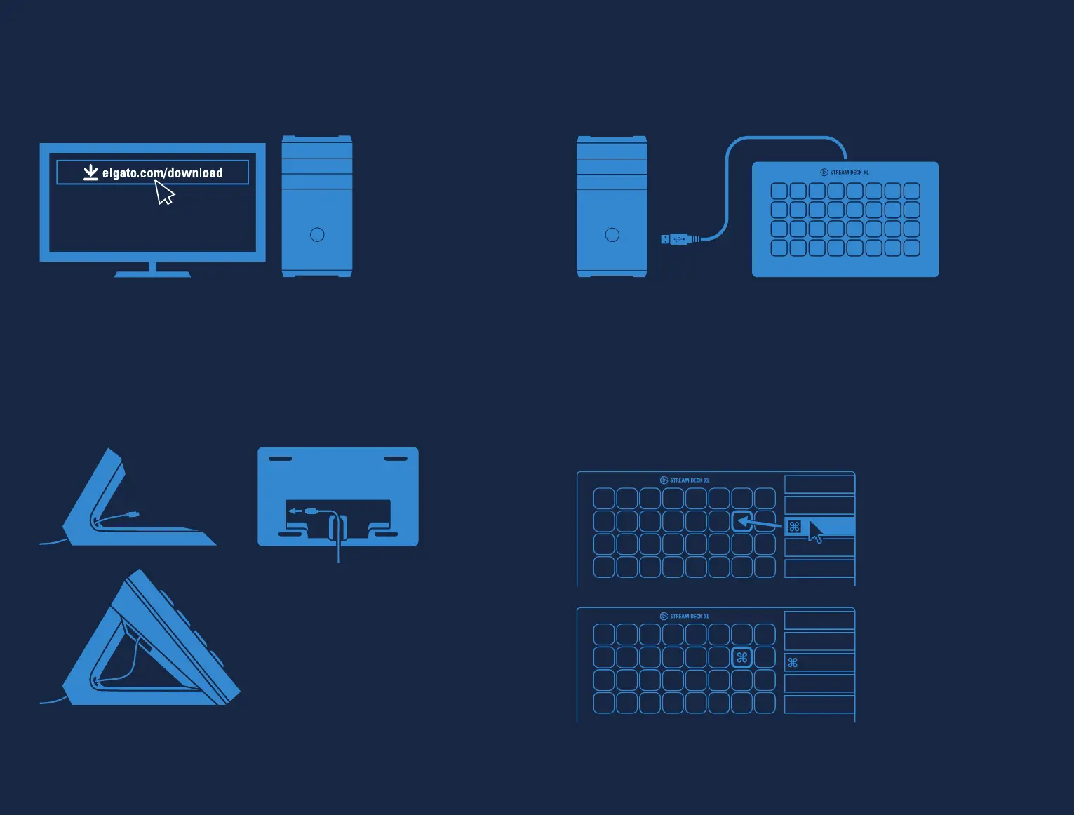 Elgato Stream Deck XL - Getting Started; Download and Install App; Connect Cable and Stand; Connect to PC;Mac