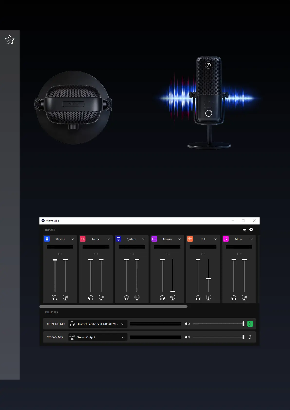 Wave Link software allows for direct control of Wave:3 and up to eight other audio sources