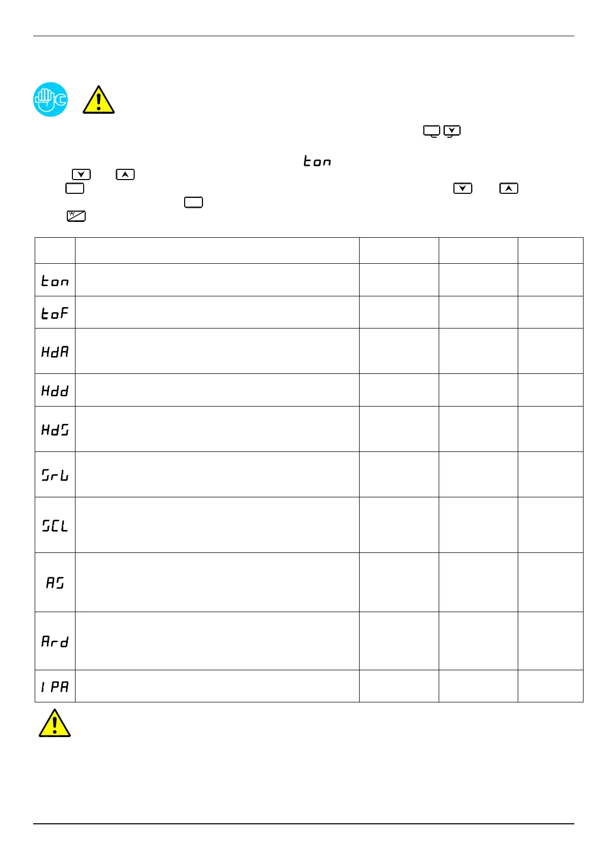 pressed to display the value of the selected parameter and use arrows and to change