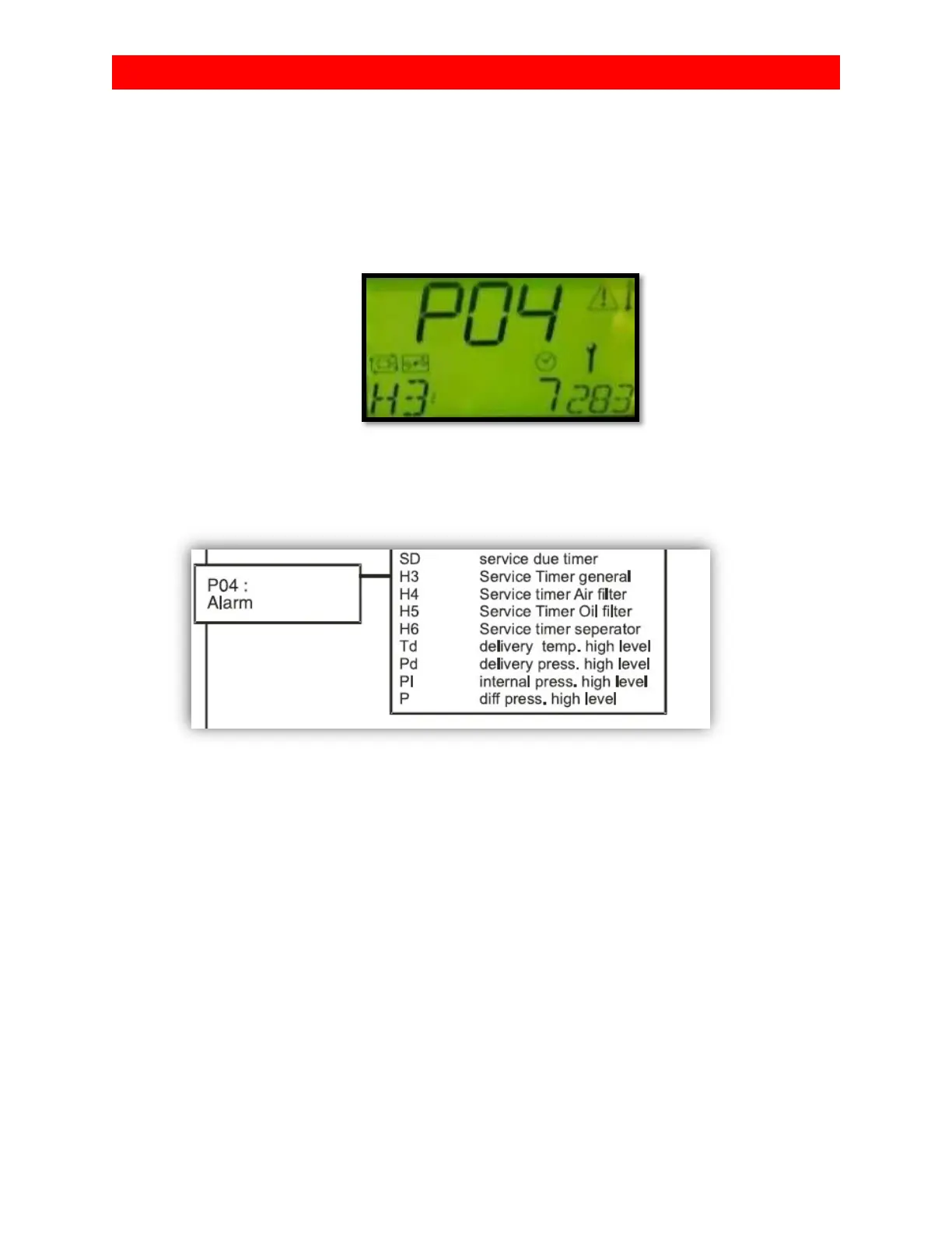 Scroll down to H4 using the - button. This is the air filter alarm.