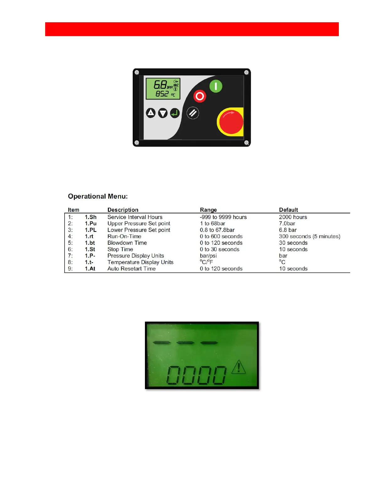 2. To reset this alarm you must access the operational menu.
