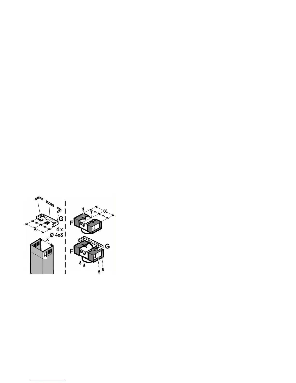 14. Applicera skorstenens upphängningsbygel „G“ på