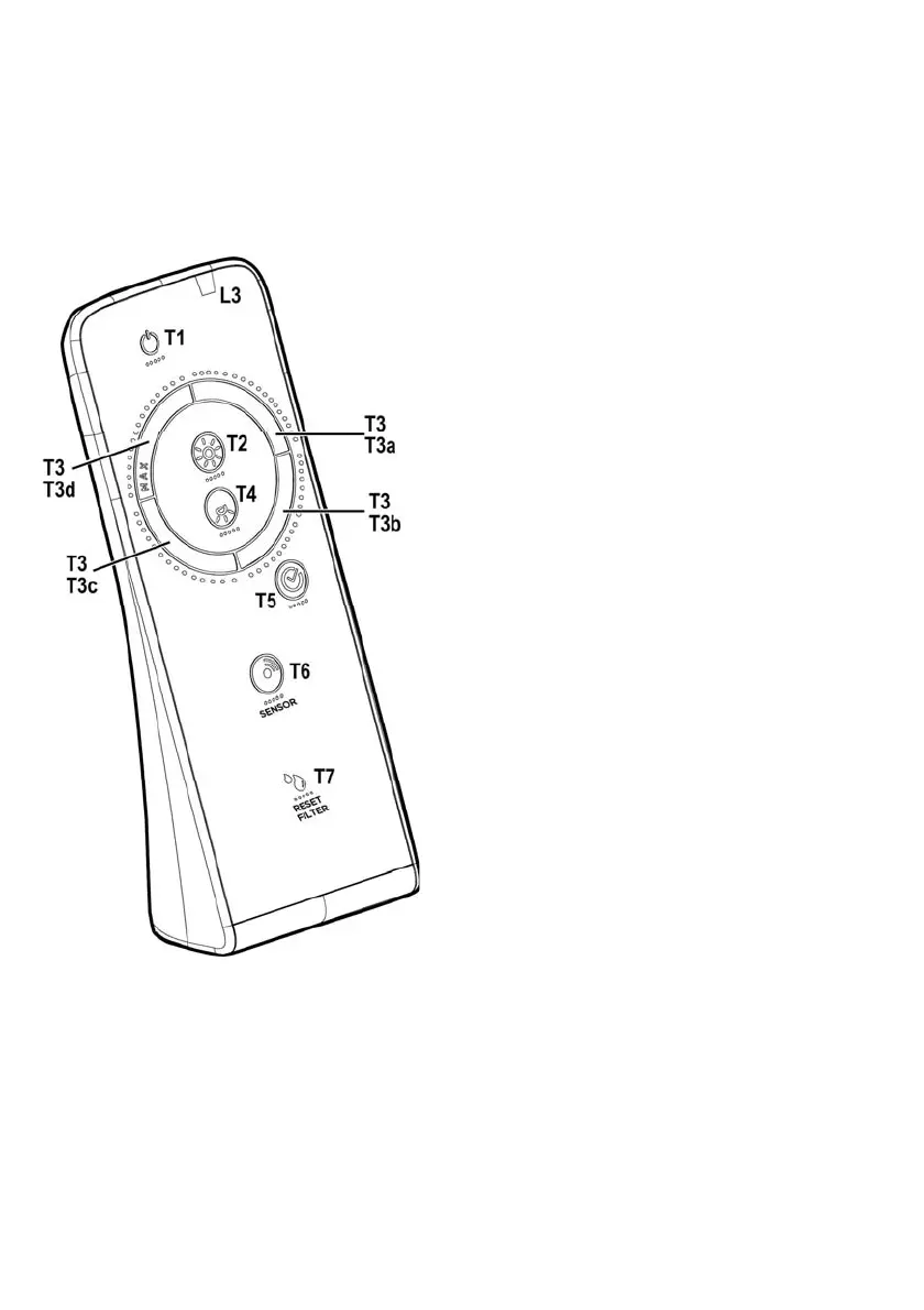 T5. ON/OFF tast til udskudt slukning af emhætten