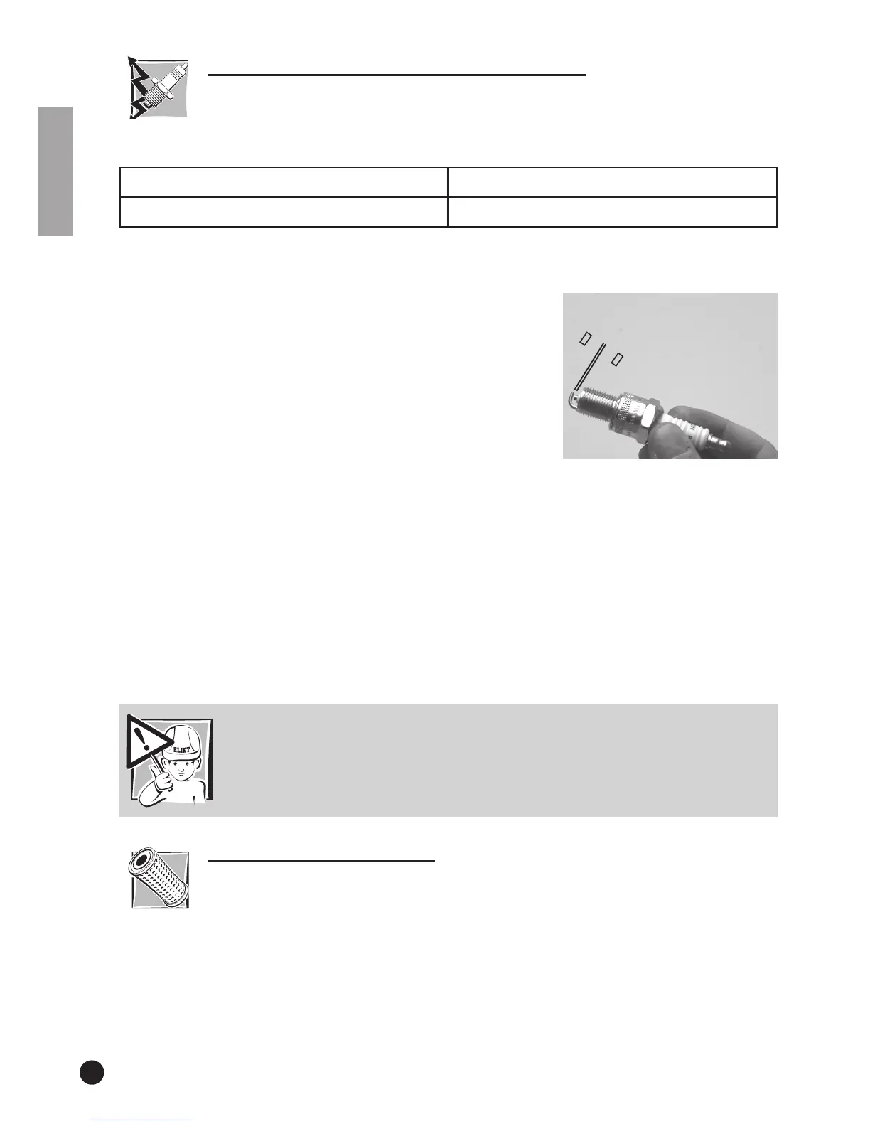 • Thesparkplugmustbereplacedifitshowsheavydeposits