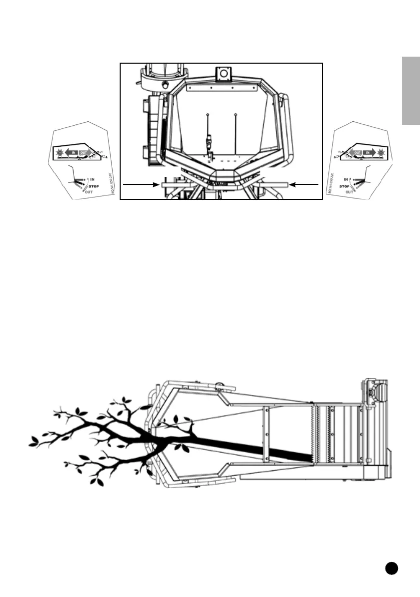 • Feed the green waste into the hopper and guide it towards the anti-projectile shield. In the case