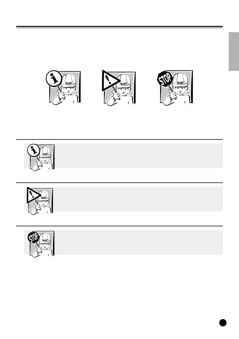 The symbols used in this manual ("For your information", "Caution", "Warning") are meant to