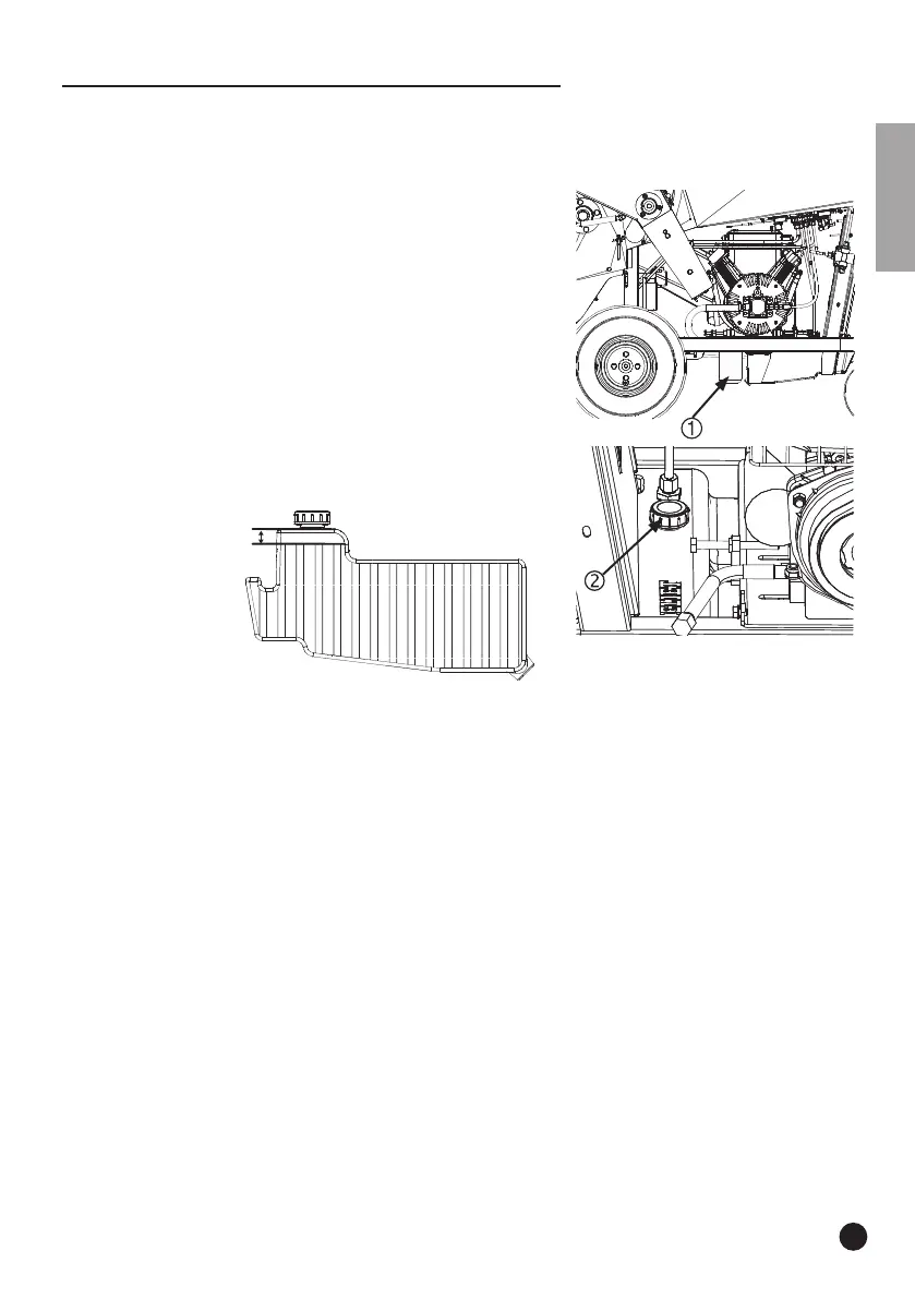 • Fill the hydraulic tank via the filler opening (2) up to 2 cm