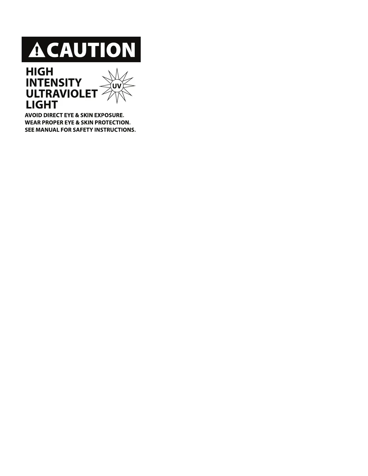 • DO NOT LOOK DIRECTLY INTO THE (UV) LIGHT AND/OR VIEW
