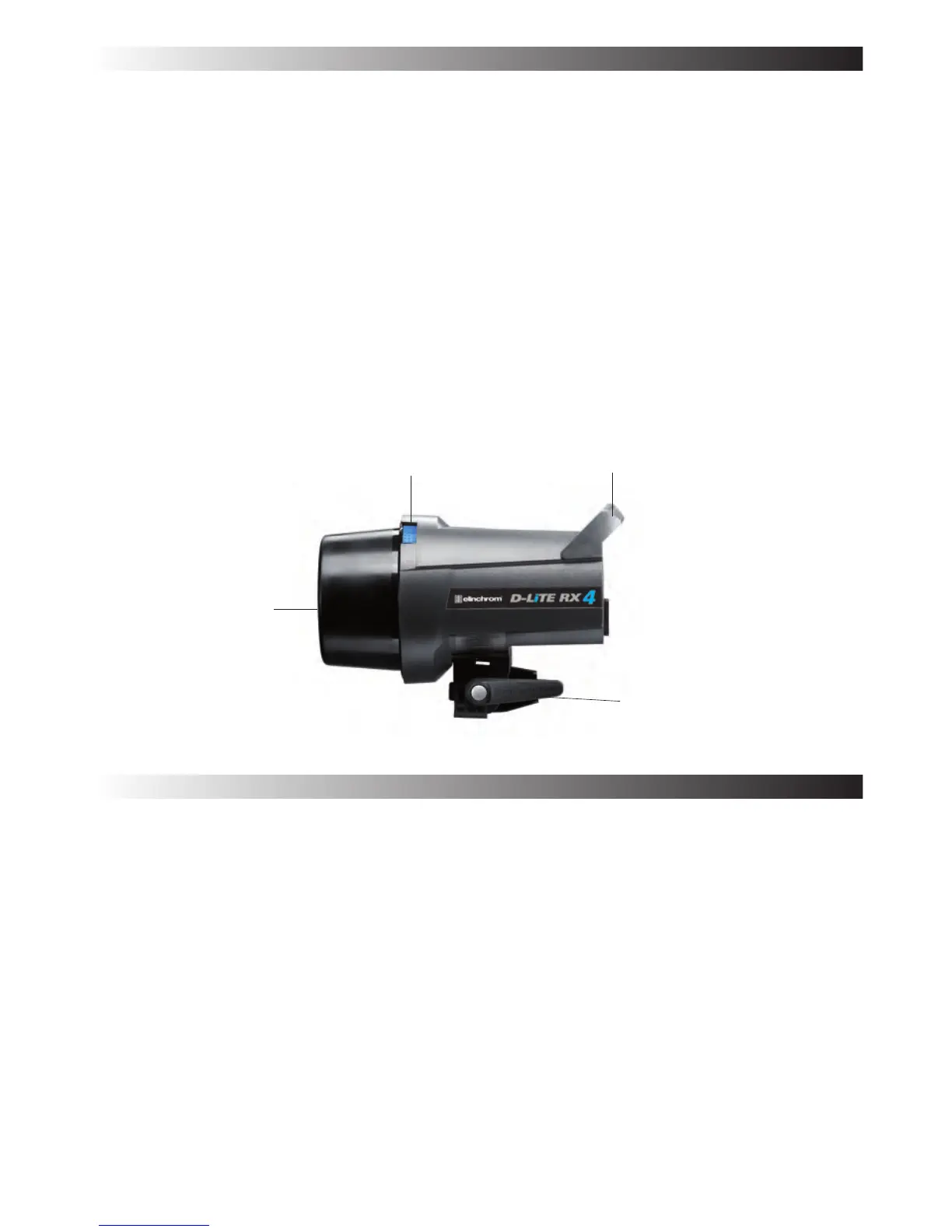 Use only the Elinchrom mains cord. Switch off the unit before the mains cord is connected to