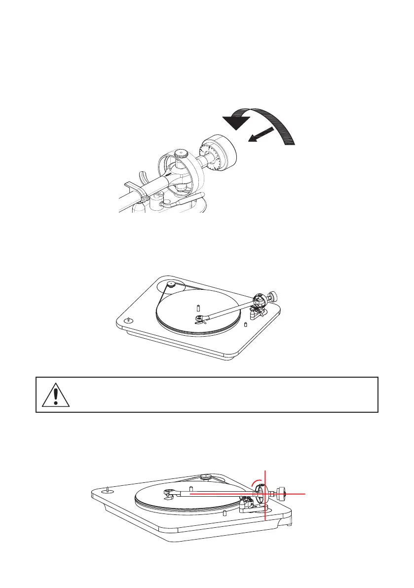 4- Adjust the counterweight until you obtain a perfect horizontal balance of the tornarm.