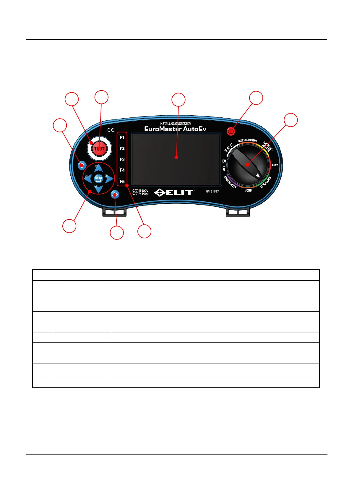 F1 – F5 knapper Avhengig av valgt område har de forskjellig funksjon relatert til målingen.