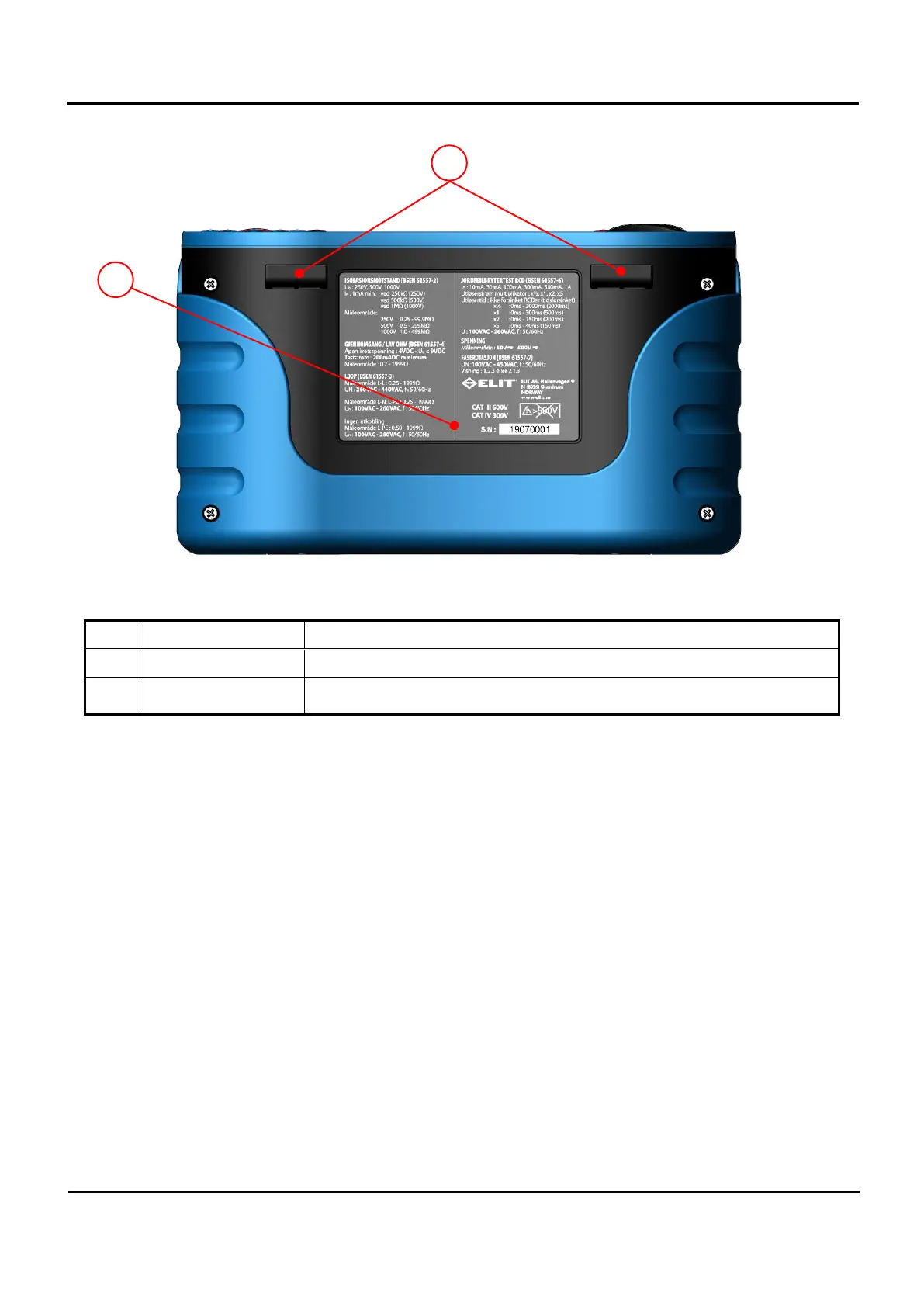 Etikett Viser måleområde iht. EN615557, serienummer og sikkerhetskategori