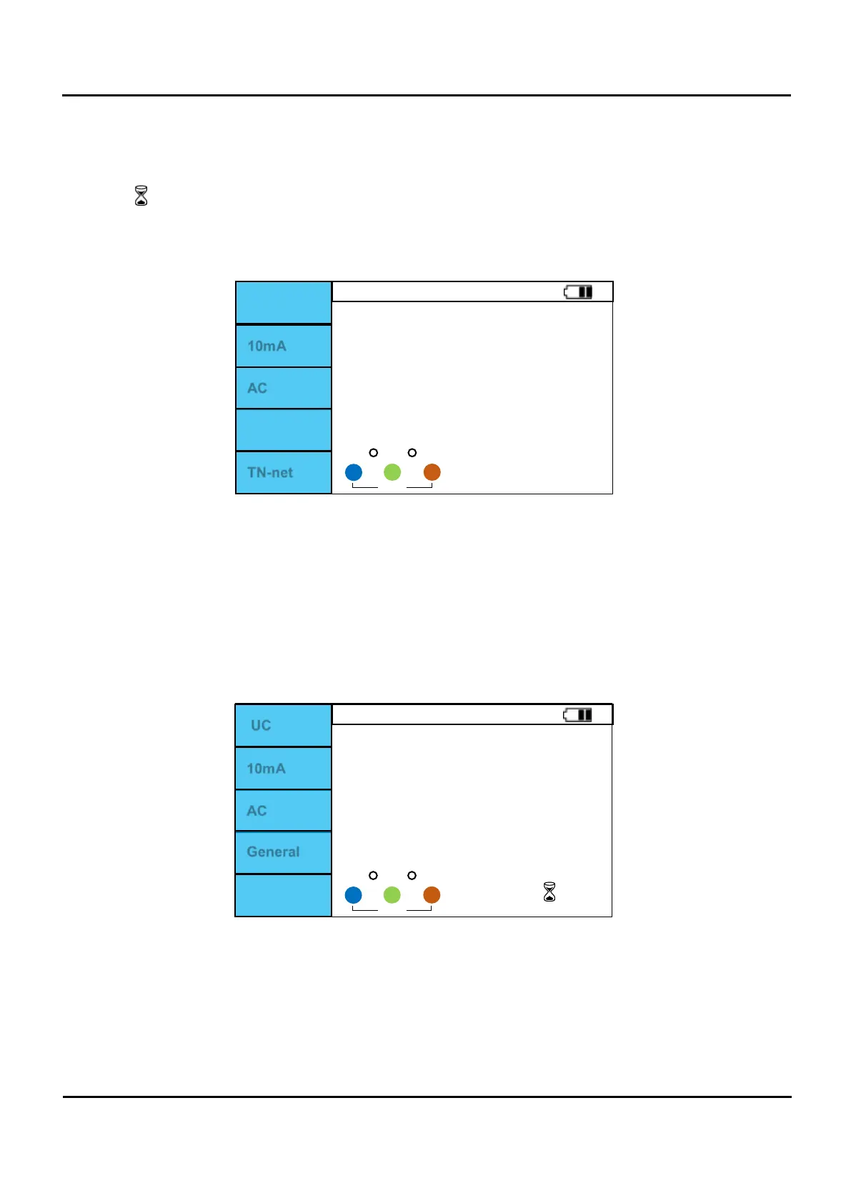 I. Skru på instrumentet og sett rotasjonsbryteren til JORDFEILBRYTER. Velg korrekt nettsystem med F5.