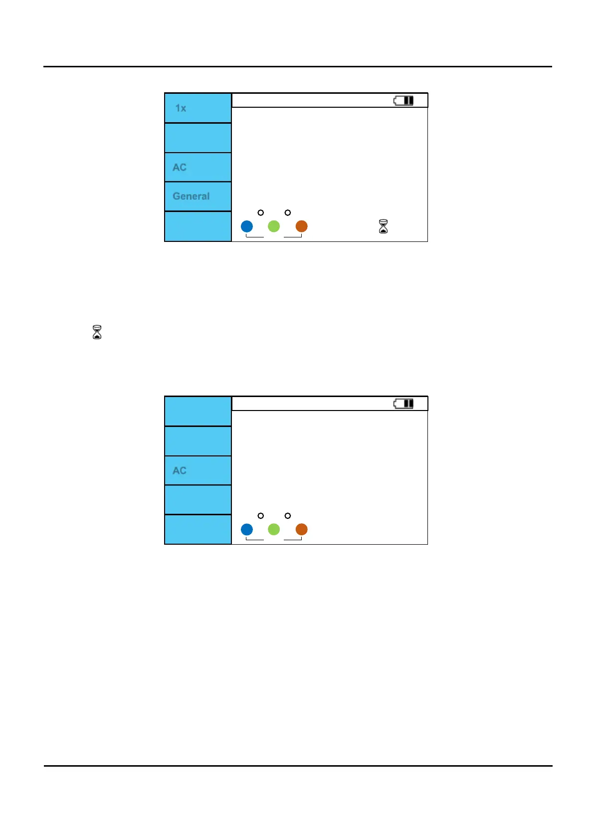 II. Trykk F1 til ønset faktor(x1/2,x1,x2,x5) for teststrøm vises i displayet og velg ønsket teststrøm med F2