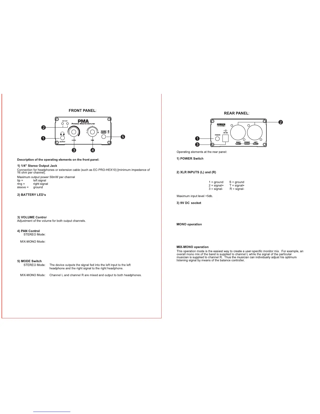 To operate in MONO mode connect your input source to either R or L input, adjust the Pan to