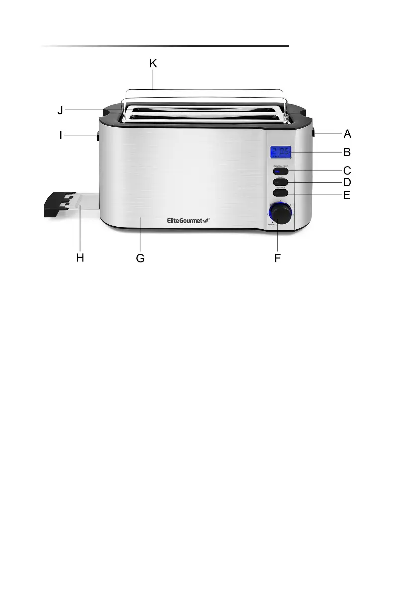 J. DUAL LONG TOASTING SLOTS: Long slots to accommodate wide variety of