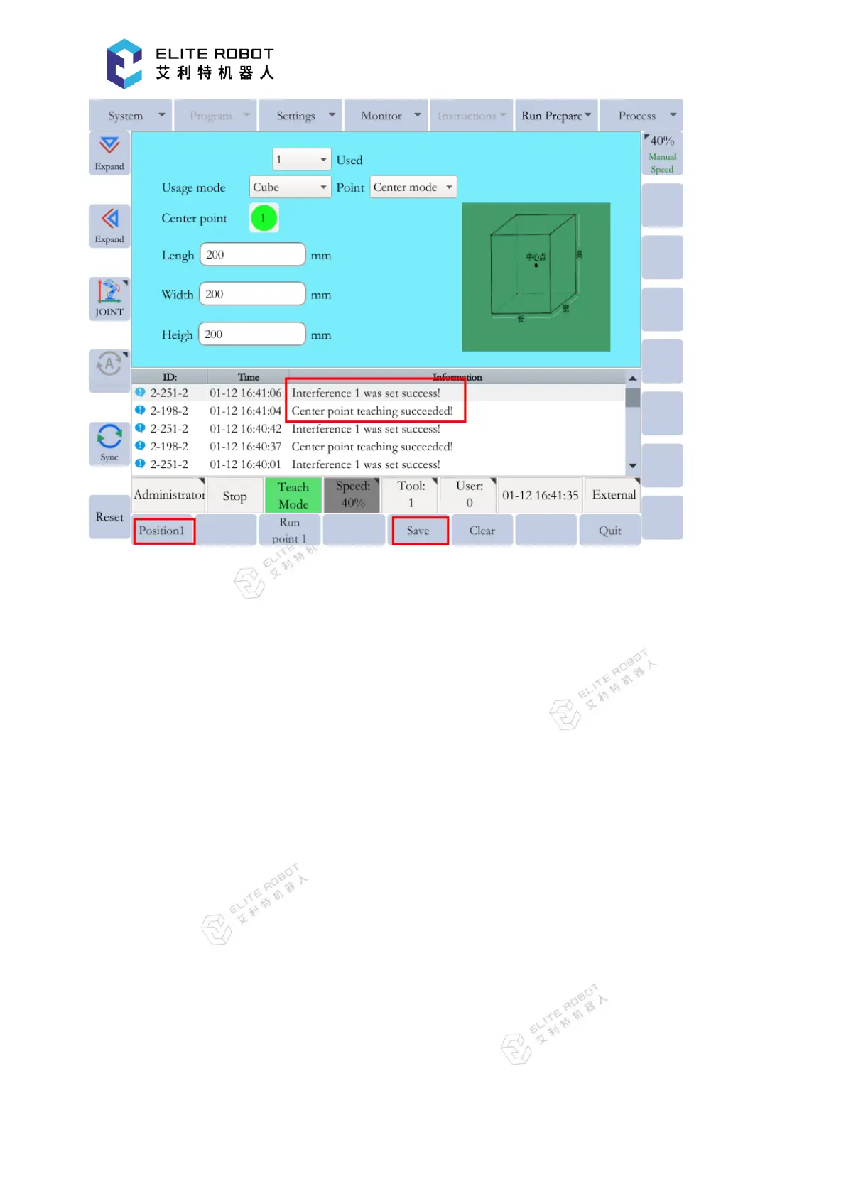 In the interference area setup page, select “Axis” for the usage mode. Then select the axis