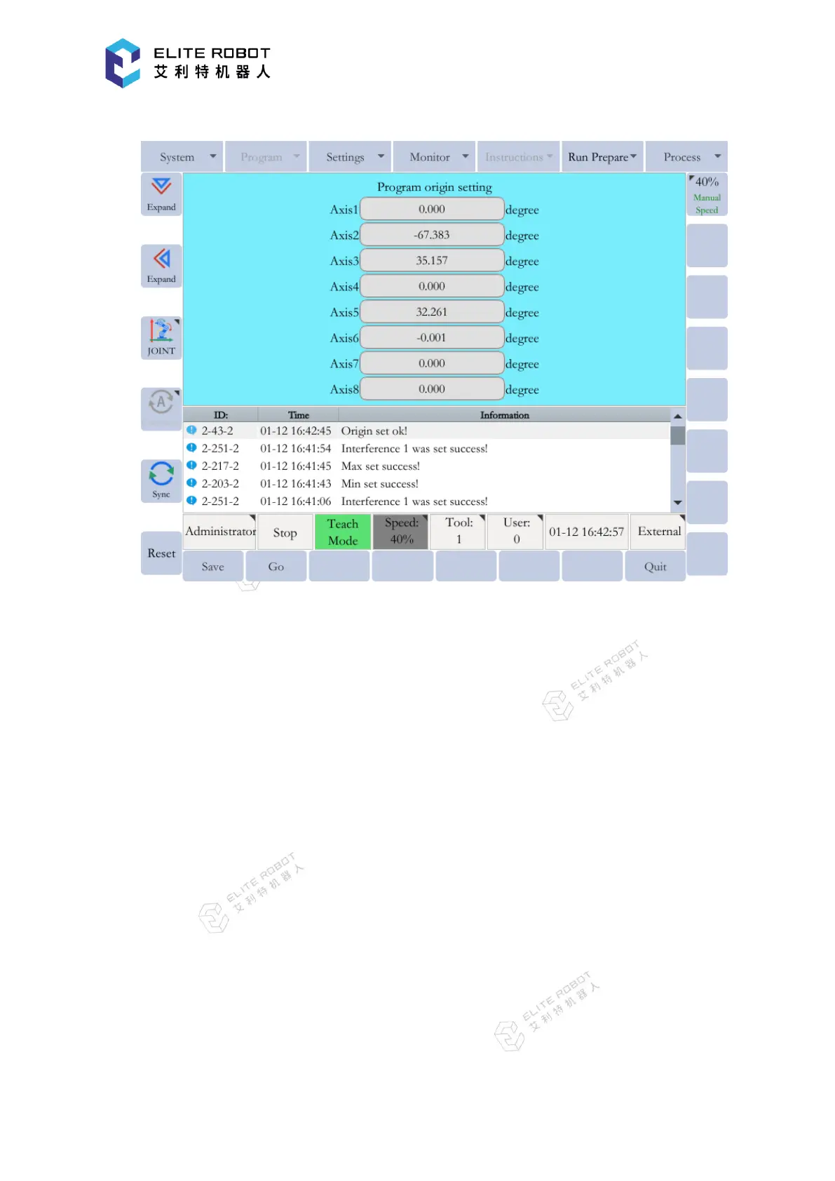 The mechanical home position of the manipulator body and the accuracy of TCP can be