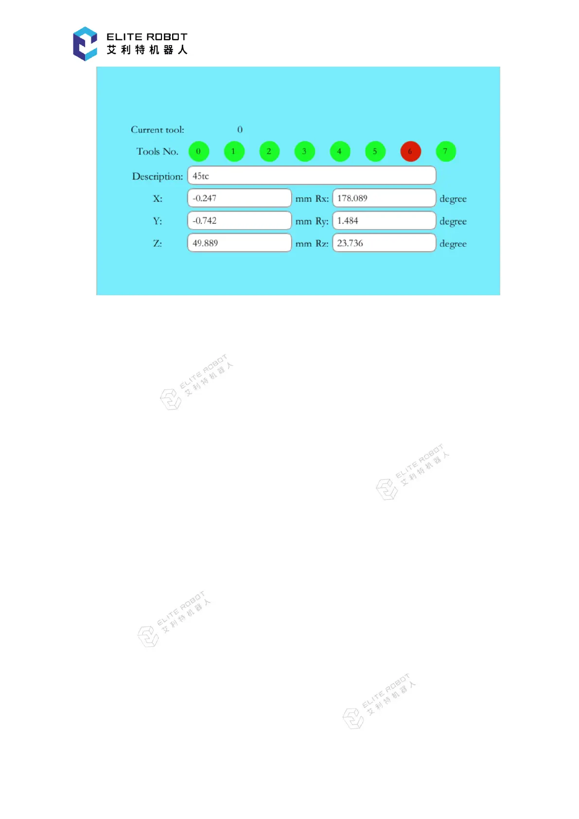 The monitoring area is mainly used to display the robot coordinates, variable values, IO port