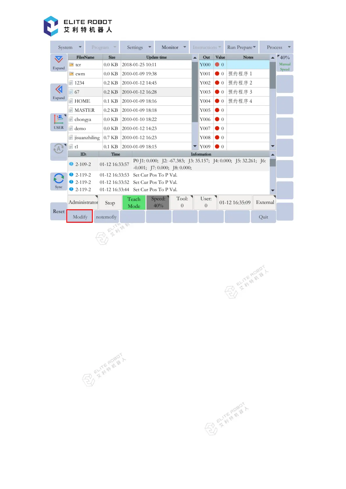 monitor page, select Y000 using the cursor and press [MODIFY] in the submenu area to reverse