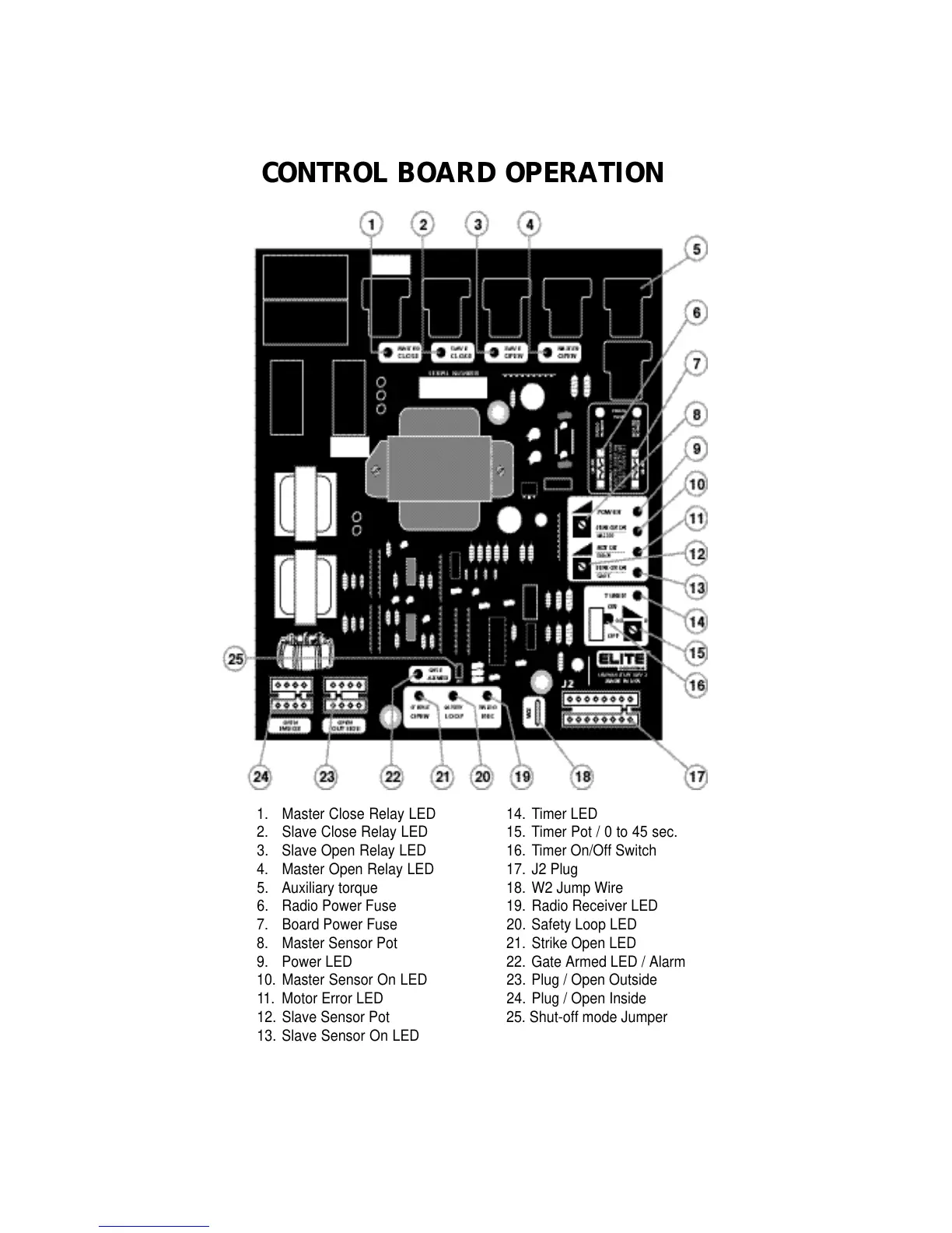 Elite ACTUATOR-1 - Control Board Operation Overview; Control Board LED Indicators; Control Board Component Identification