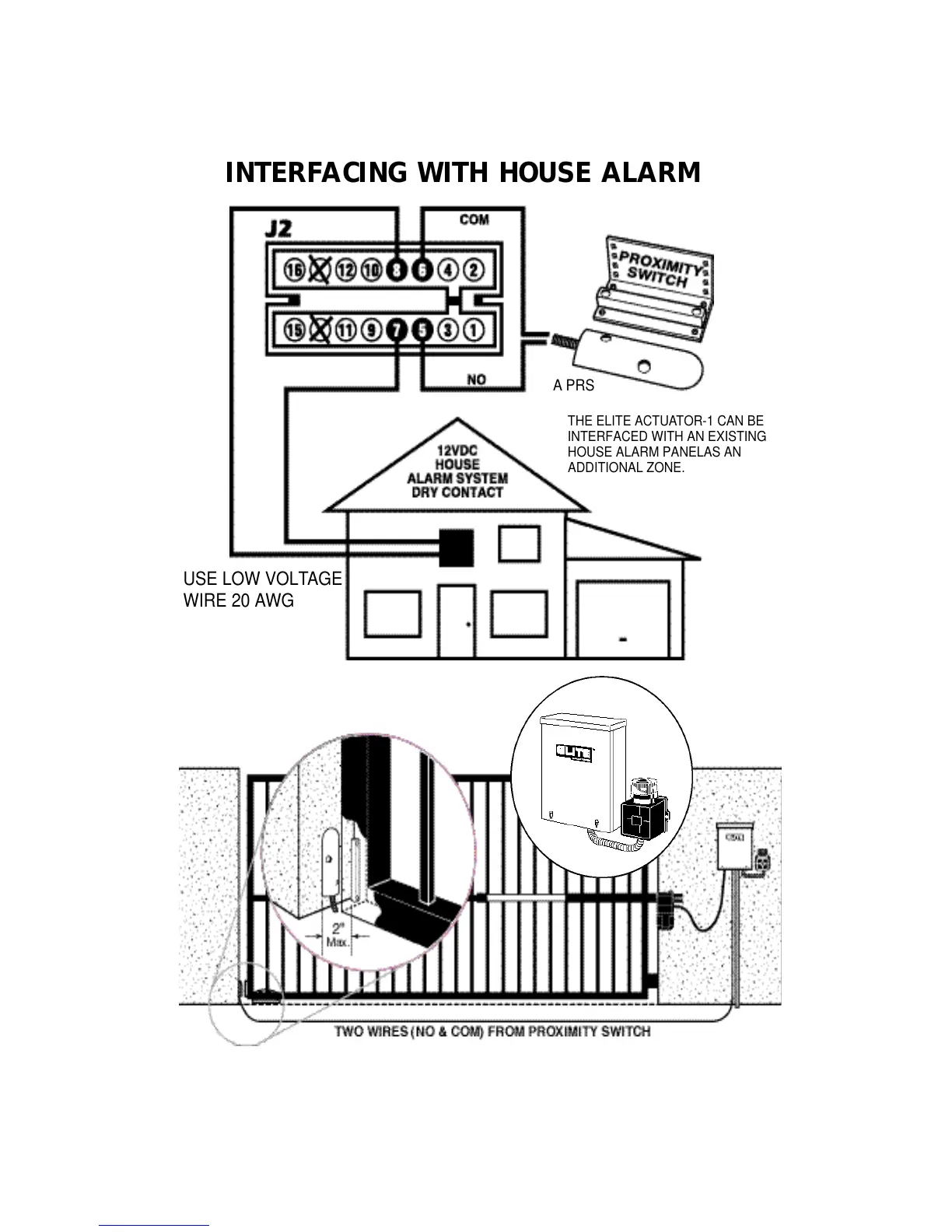 Elite ACTUATOR-1 - Interfacing with House Alarm System; Proximity Switch Wiring to Control Board; Alarm System Integration