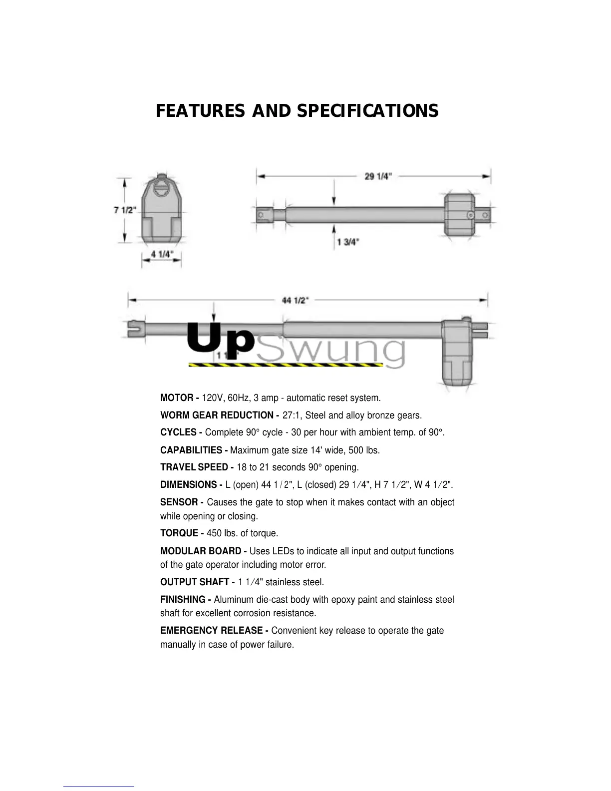CAPABILITIES - Maximum gate size 14' wide, 500 lbs.