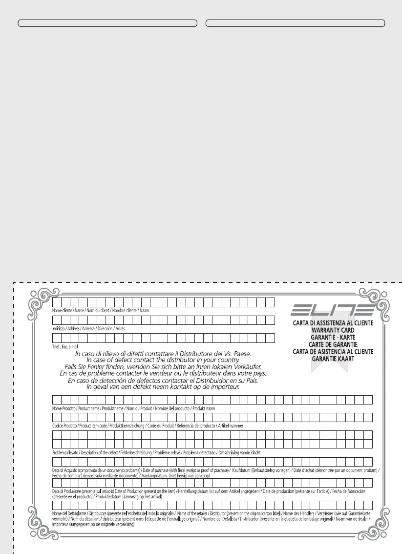 ELITE s.r.l., niet opvolgt, wordt er in geen geval garantie gegeven aan directe of