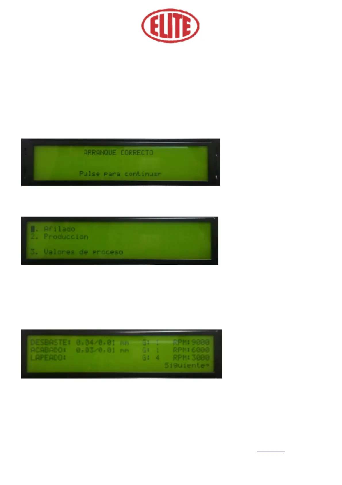 1. Roughing (Desbaste): is the start-up process. The first numerical value indicates the total roughing (Fig.