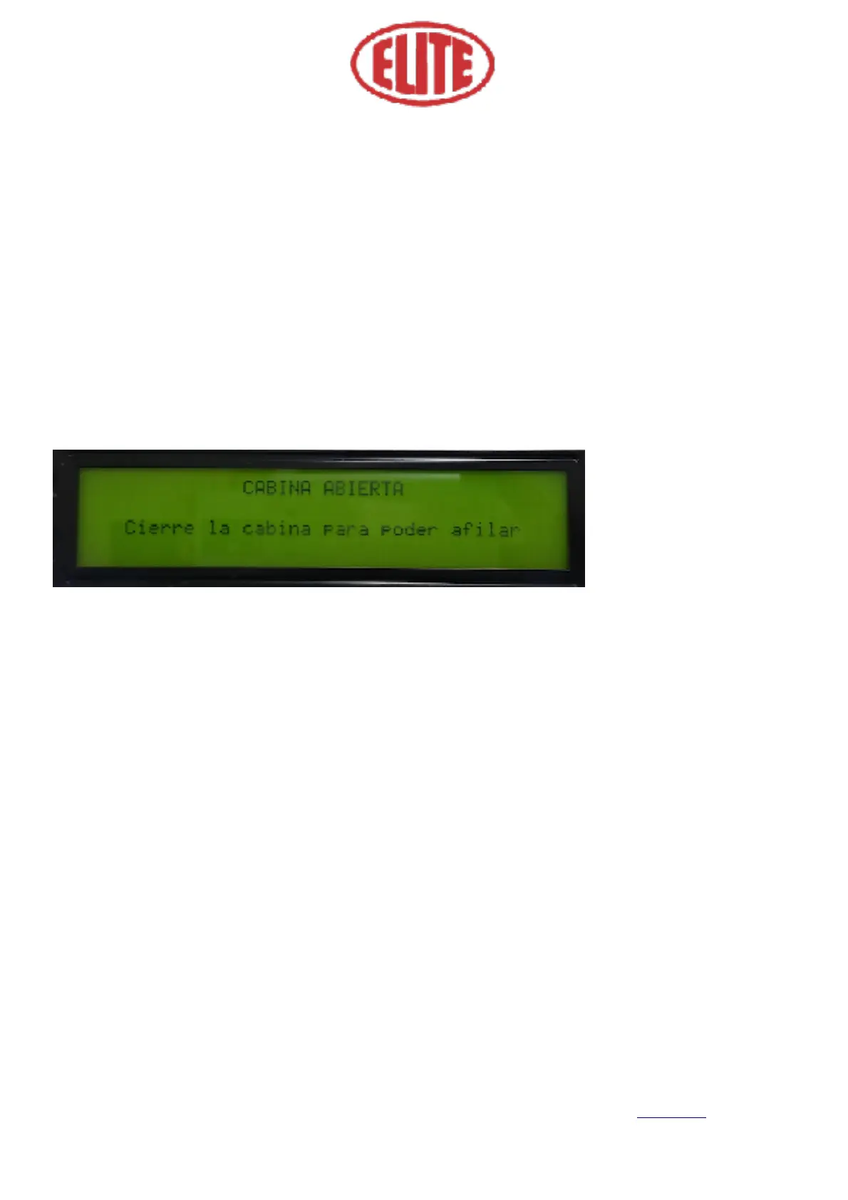 Otherwise, the following message appears on the screen “Open Cabin” (Cabina Abierta) “Close the cabin to