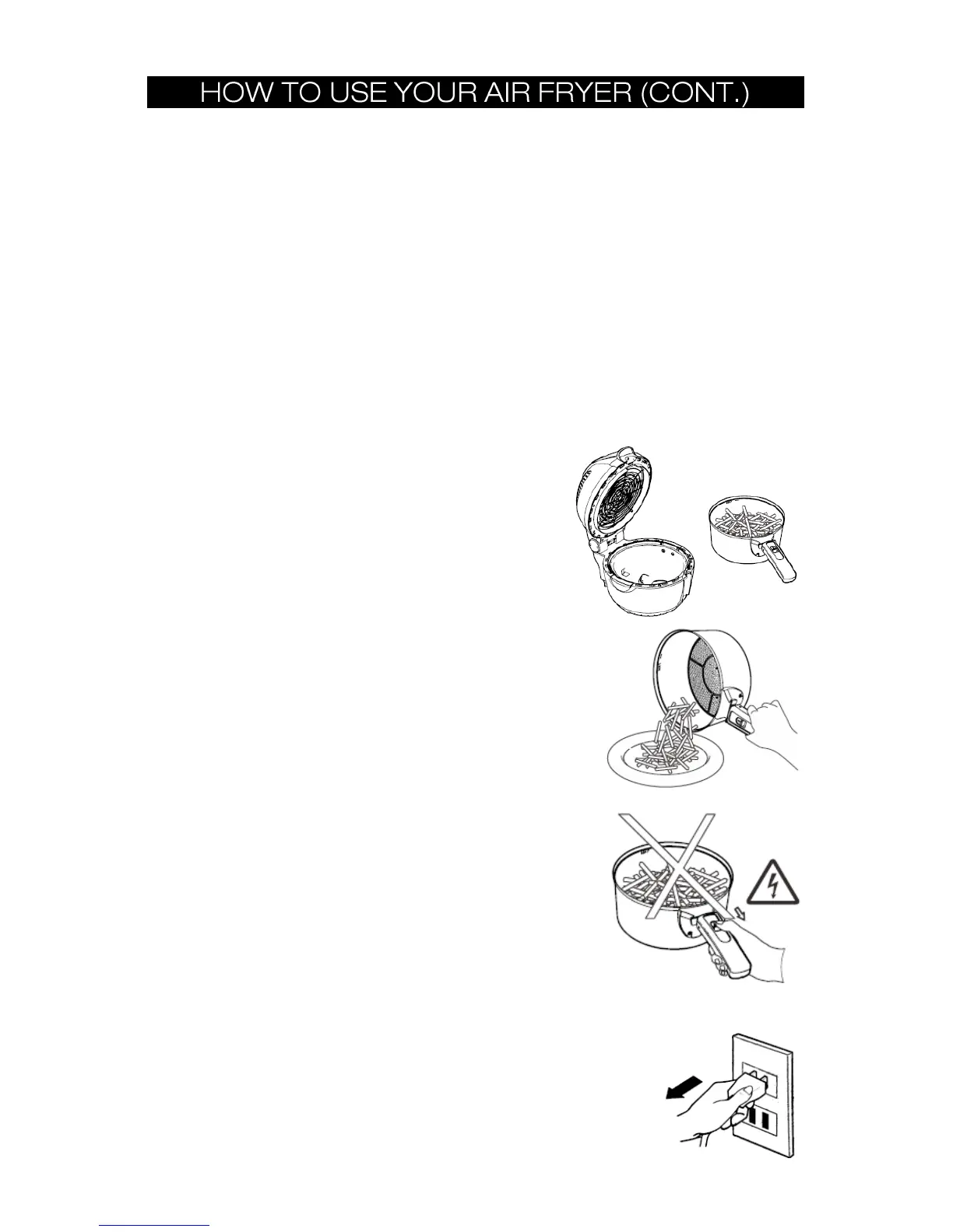 CAUTION: During cooking, the Pan (12) and Basket (13) will be very hot, only use the cool-touch