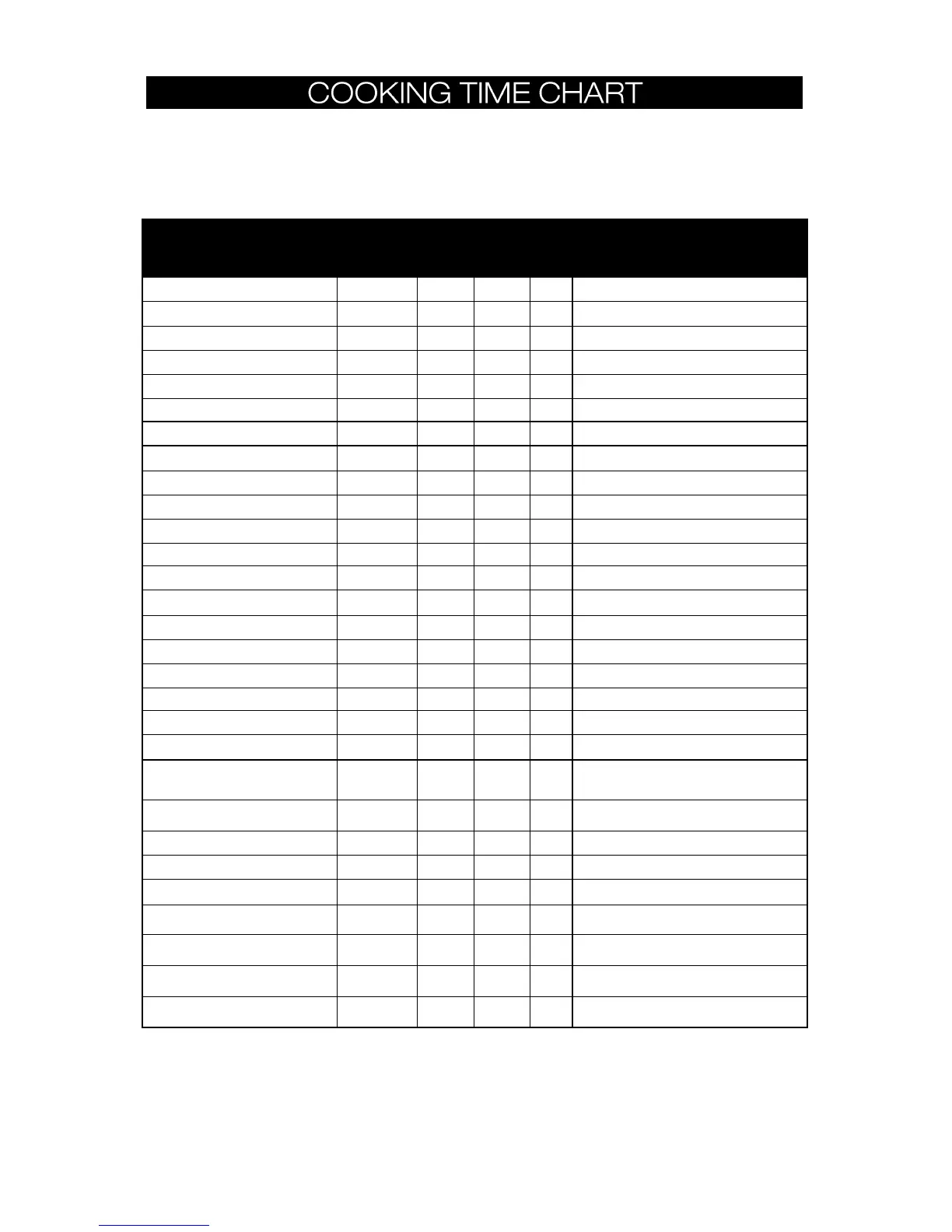 Elite EAF-1880D - Cooking Recommendations; Cooking Time Chart