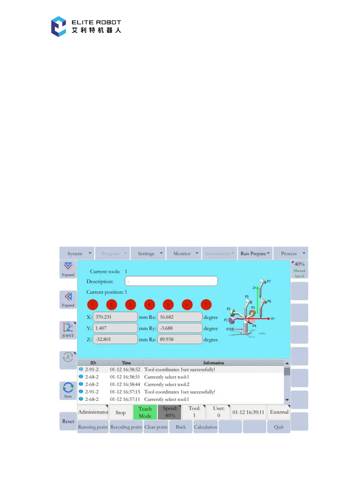 to the schematic diagram. For the five points from P1 to P5, the TCP should always be the same