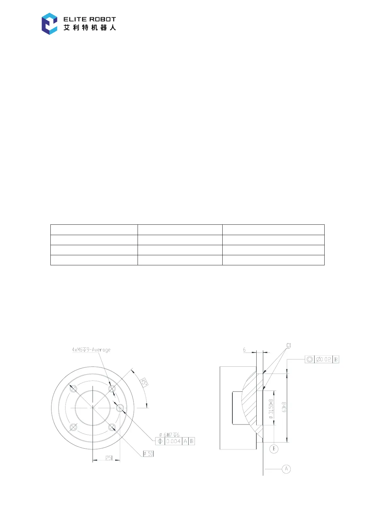 The tool flange has four M6 threaded holes and one Ф6 positioning hole, in this way the clamp