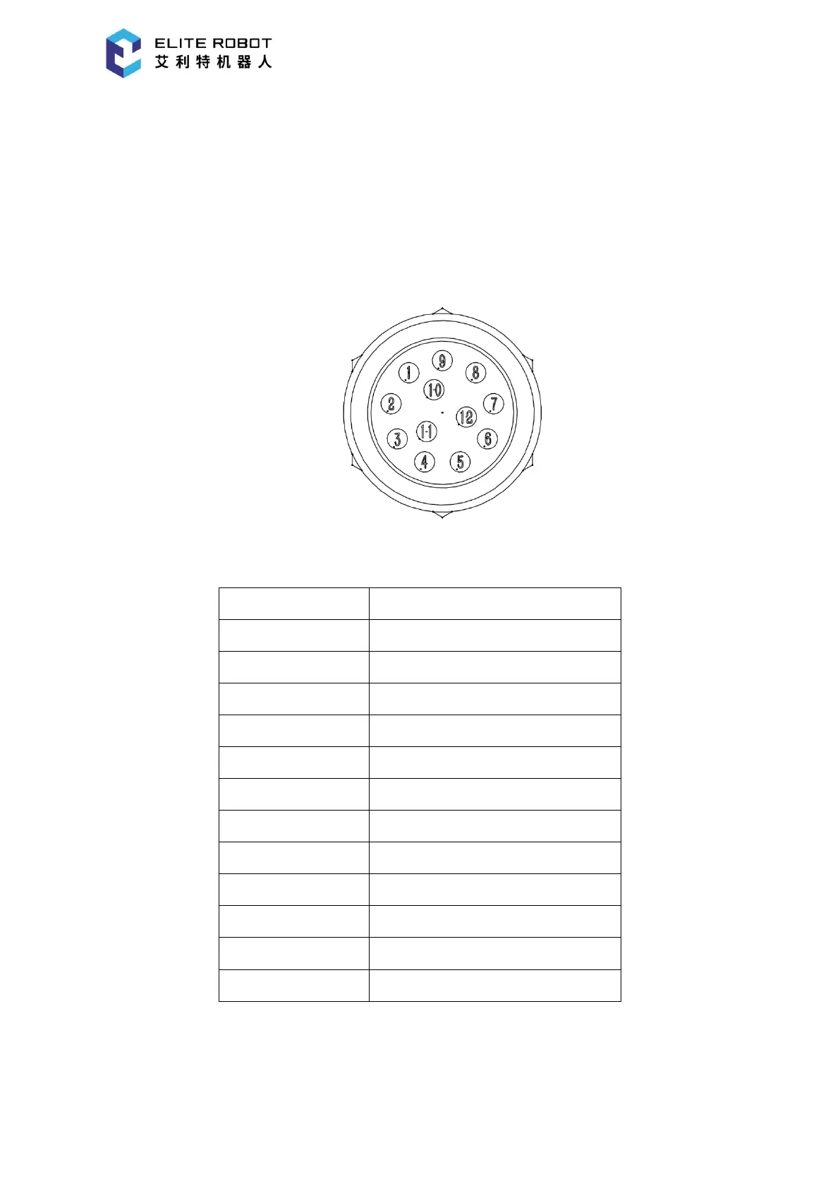 The following figure should be used for reference for a function list of 12 connecting pins of
