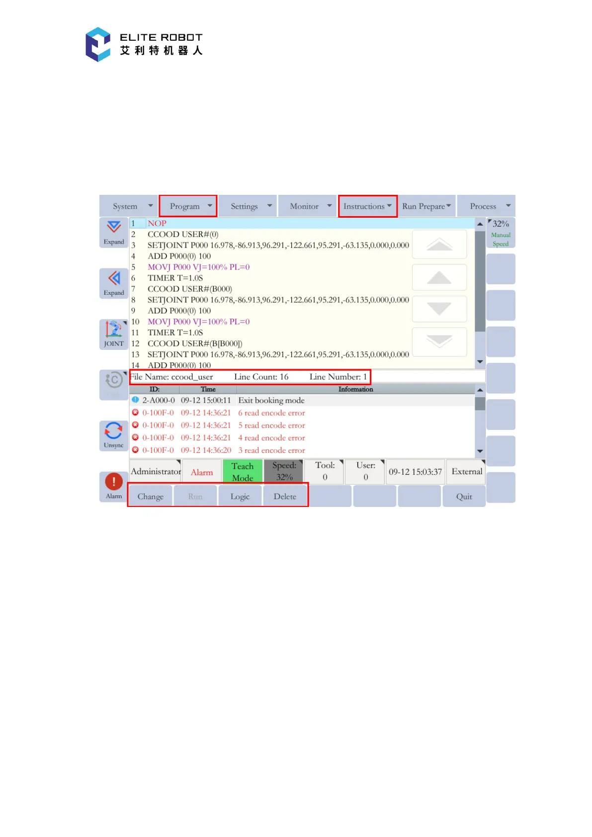 Open the program file and enter the program editing page. After entering the teaching