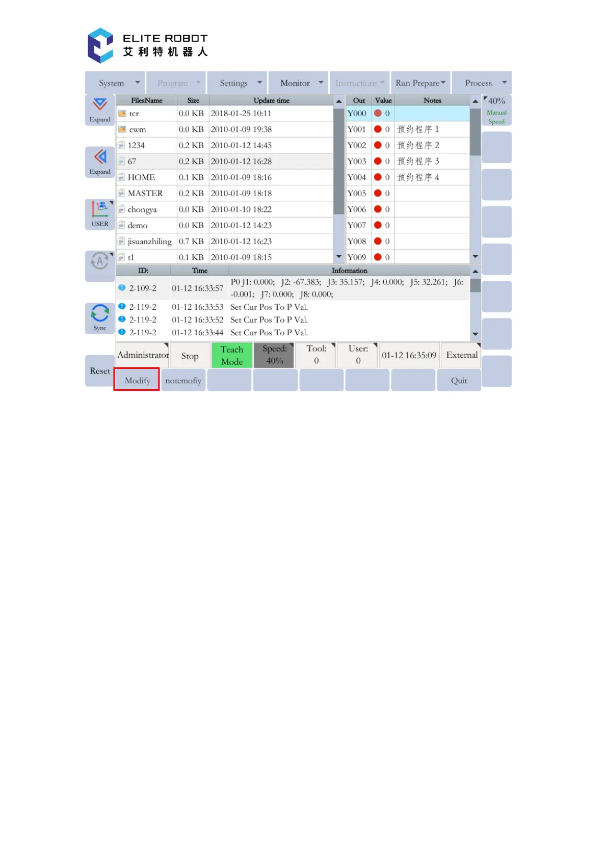monitor page, select Y000 using the cursor and press [MODIFY] in the submenu area to reverse