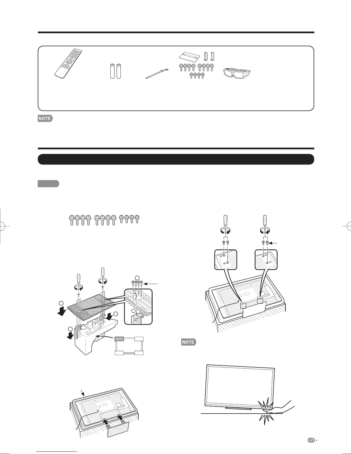 • Be sure to follow the instructions. Incorrect installation of the stand may result in the TV falling over.