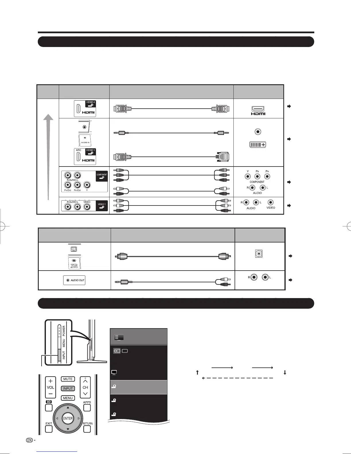 To view external source images, select the input source by pressing INPUT on the remote control unit or on the TV.