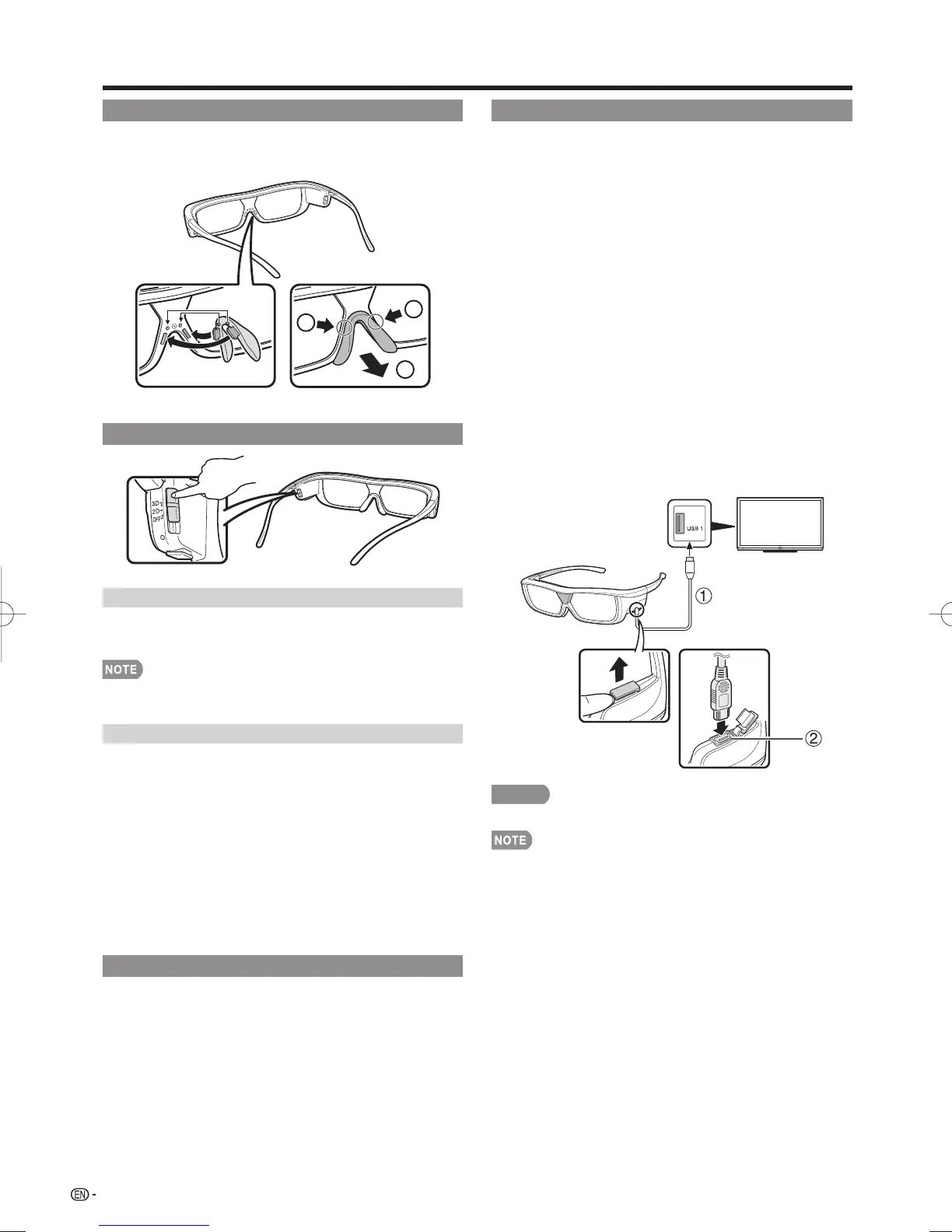 • Do not recharge while wearing the 3D Glasses.