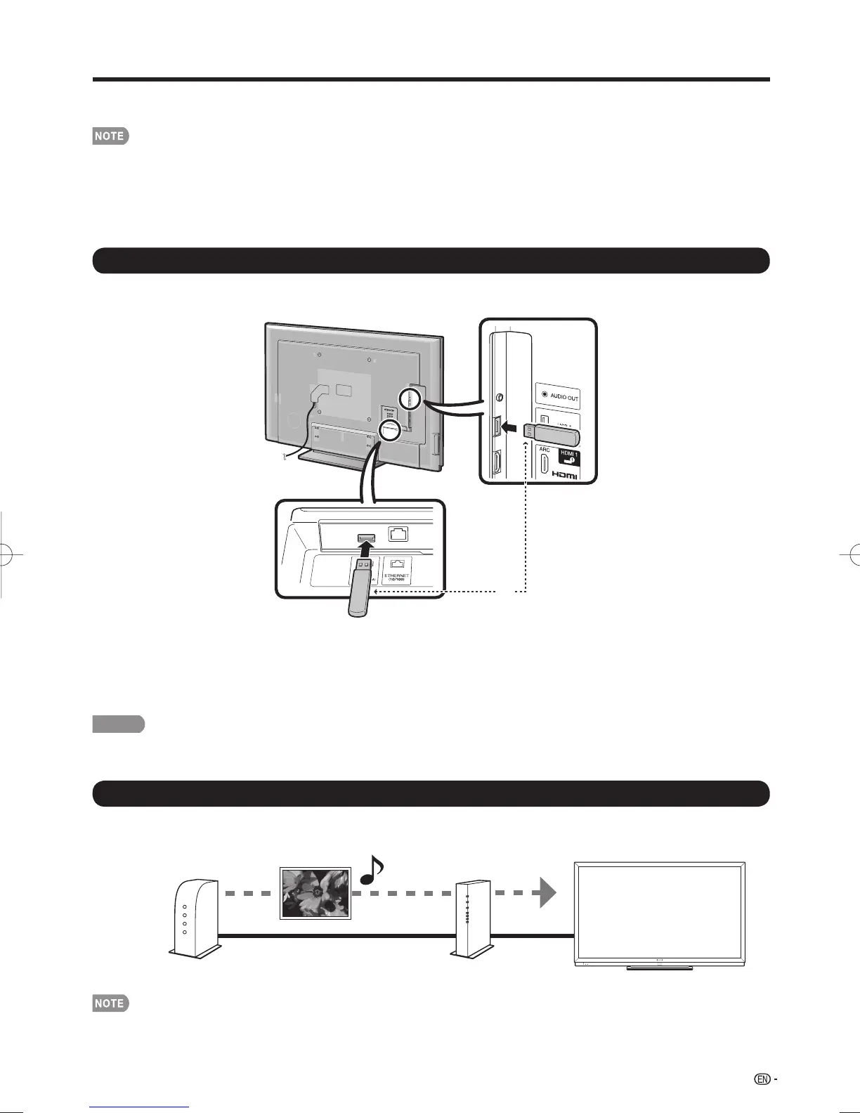 • When connecting a USB hard drive, be sure to use a hard drive with an AC adapter.