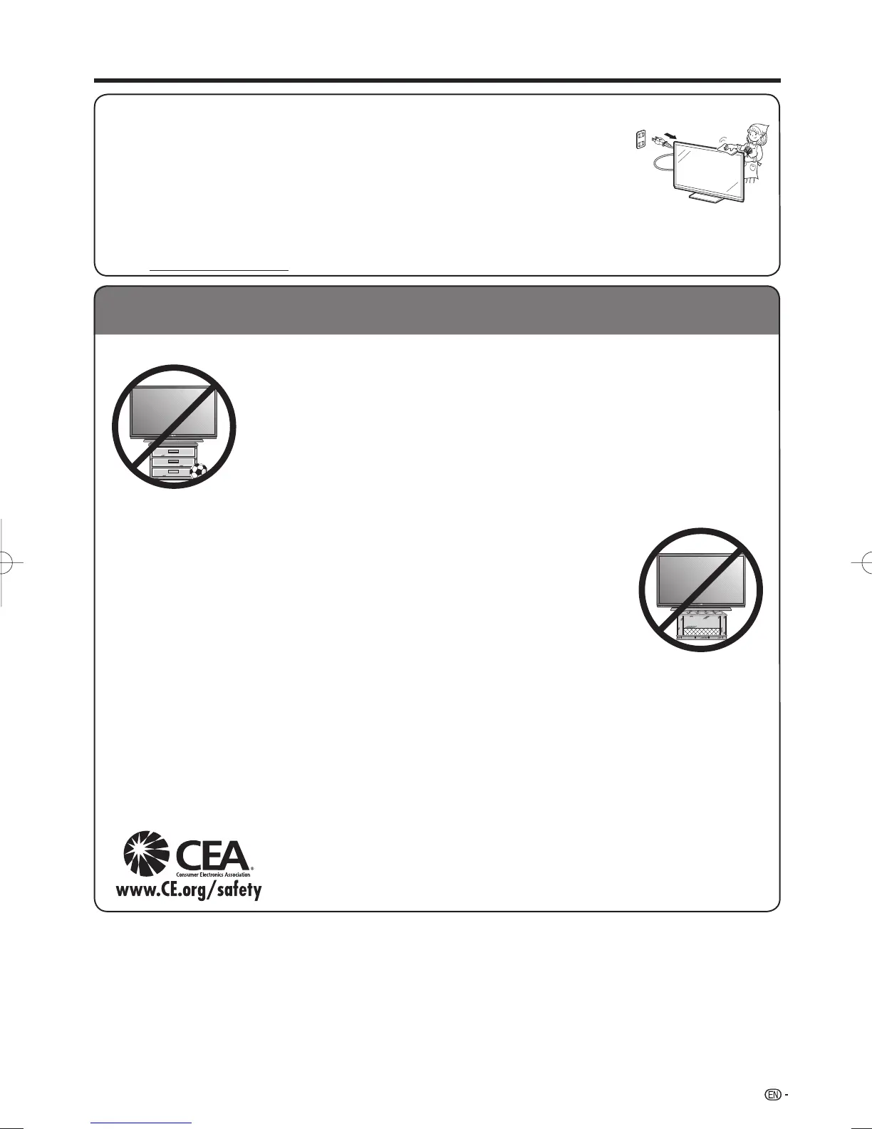 • Don’t place fl at panel displays on furniture that can easily be used as steps, such as a chest
