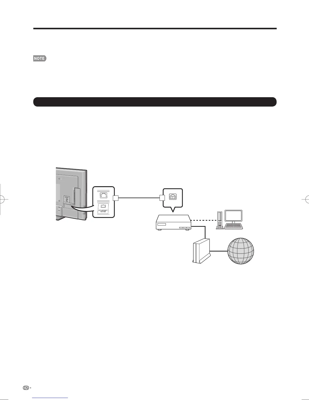 Use an ETHERNET cable (commercially available) to connect the ETHERNET terminal on the TV to your broadband