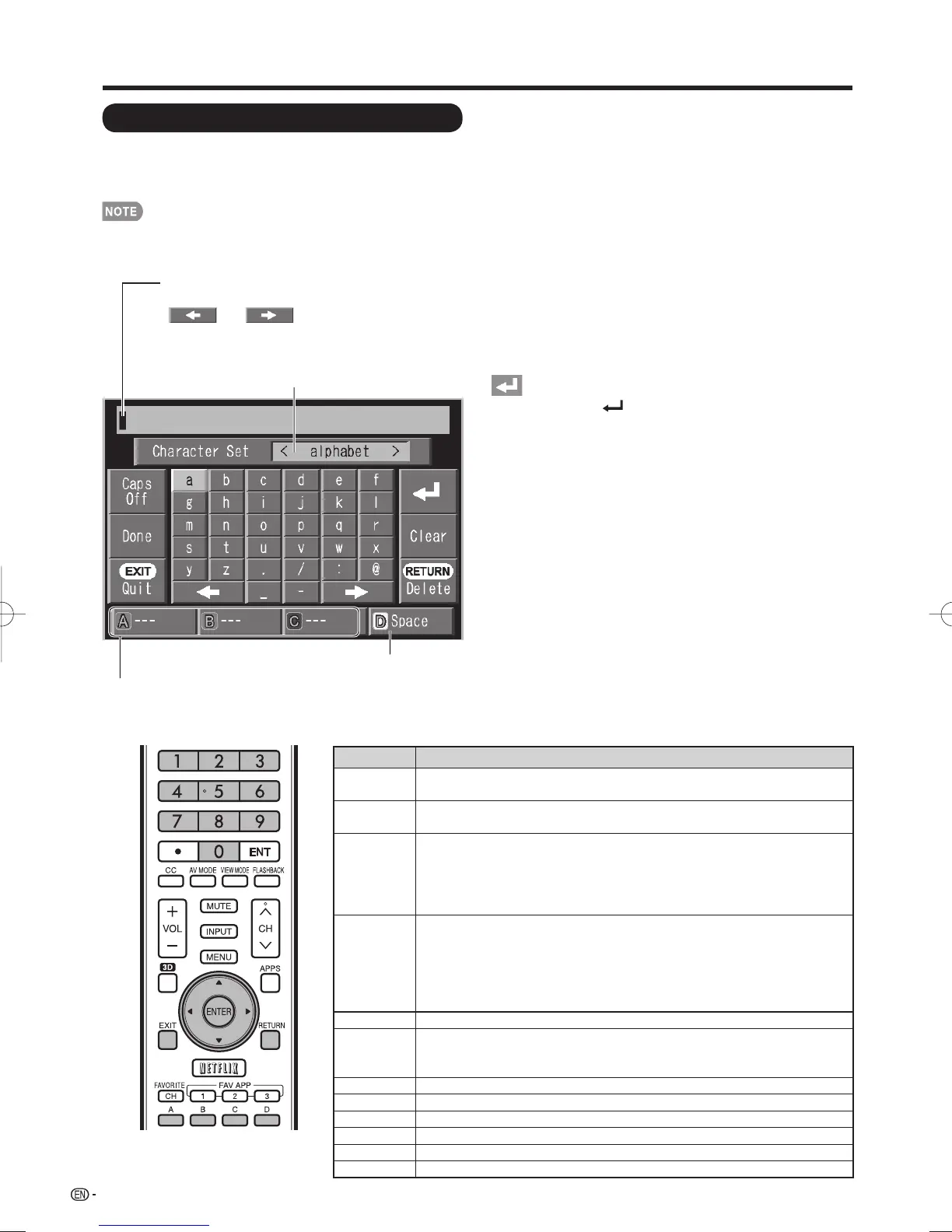 • You can also enter text by pressing A, B or C on the remote