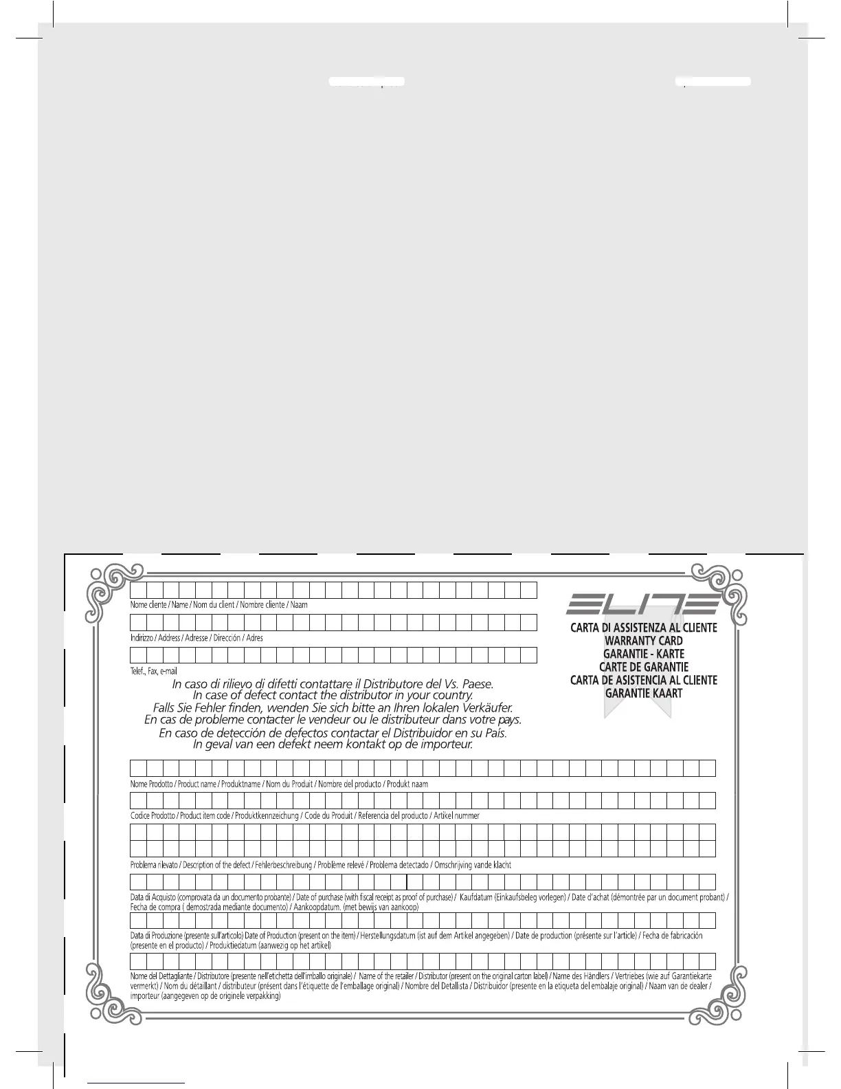 fabrikant, of van een van onze geautoriseerde service centers, is ELITE s.r.l.