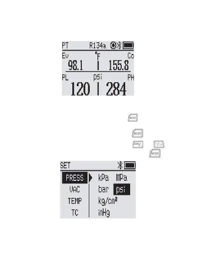 1. Dans le Réglage, sélectionner la pression.